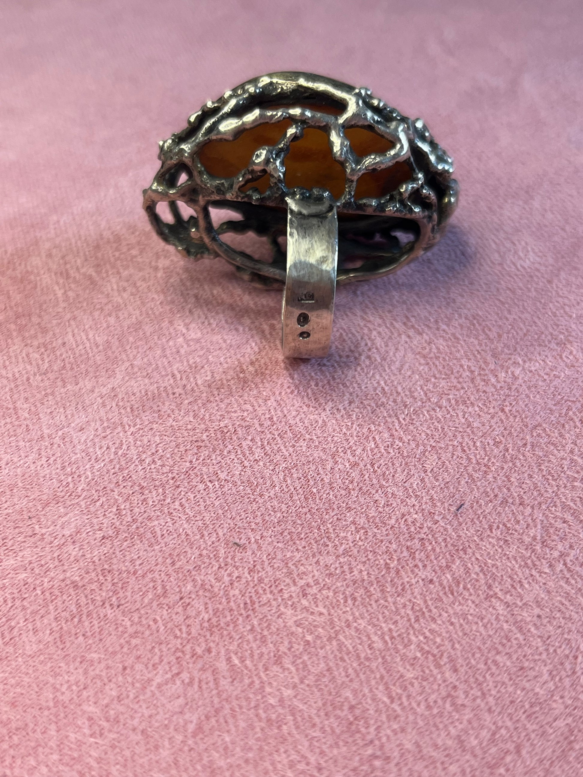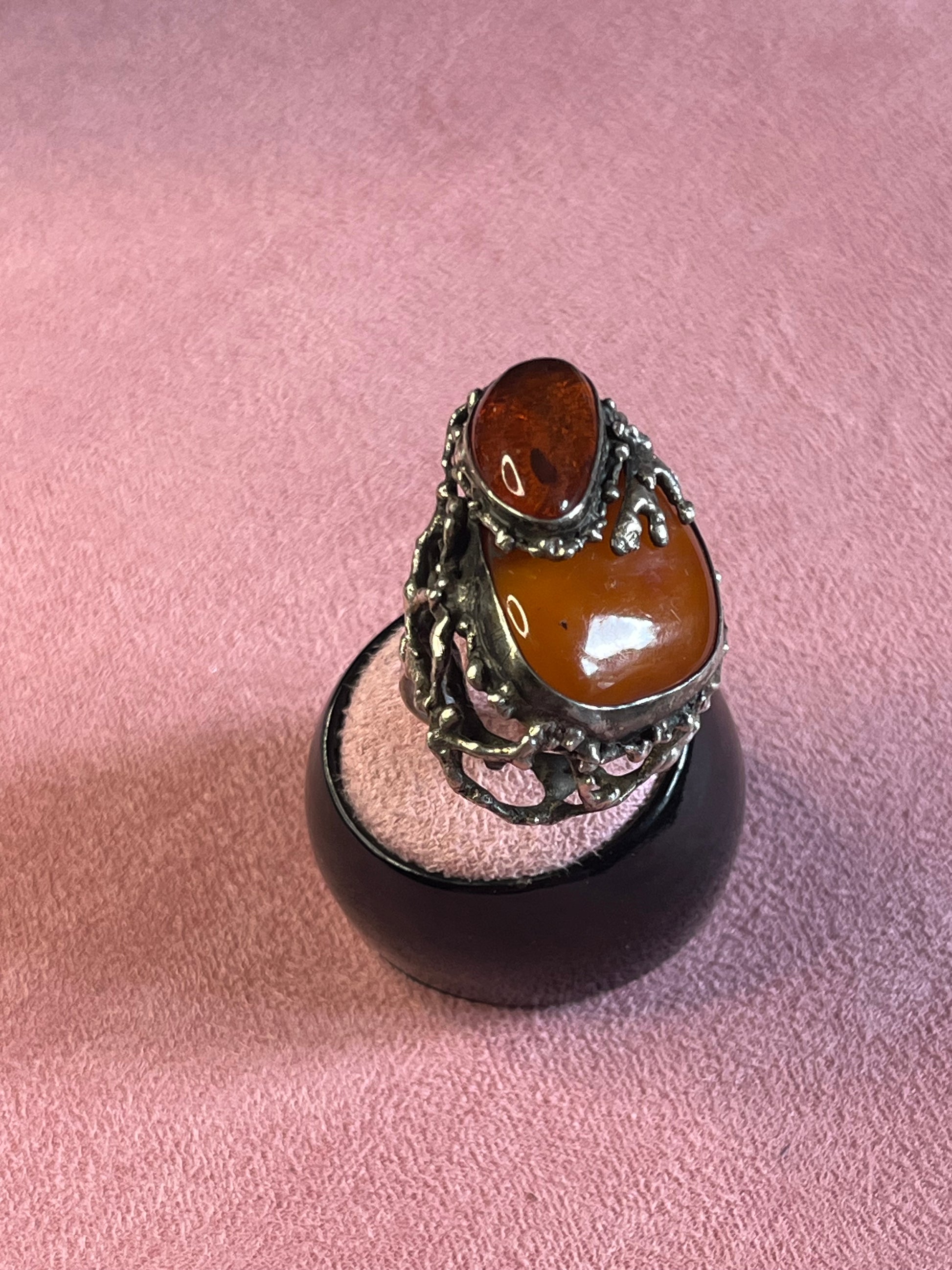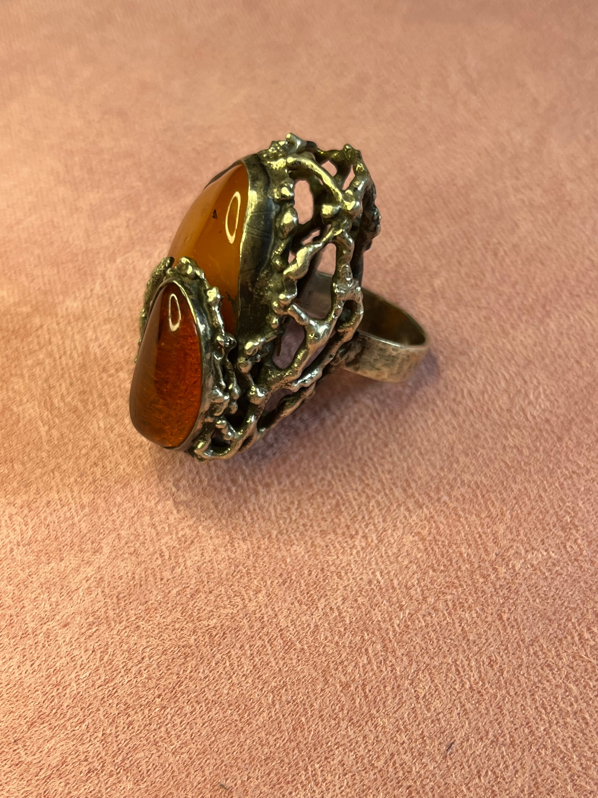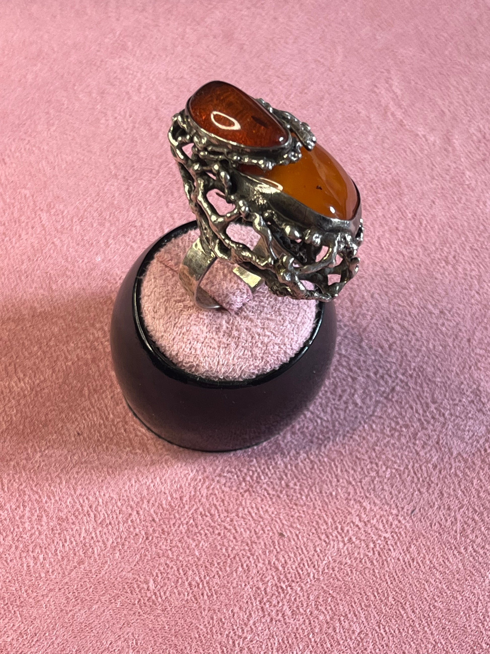 Extra Large Genuine Baltic Amber Mid Century Modern Ring