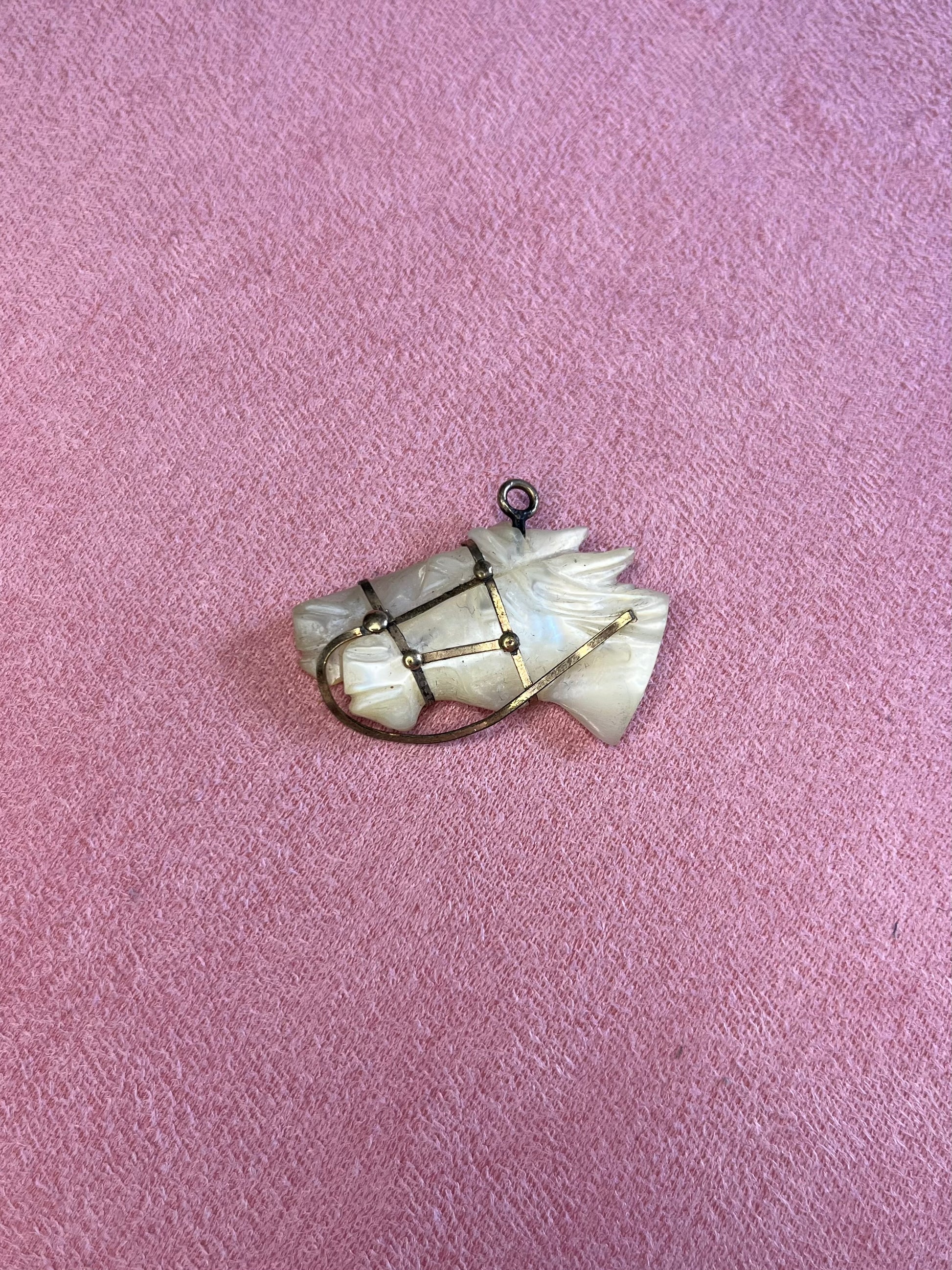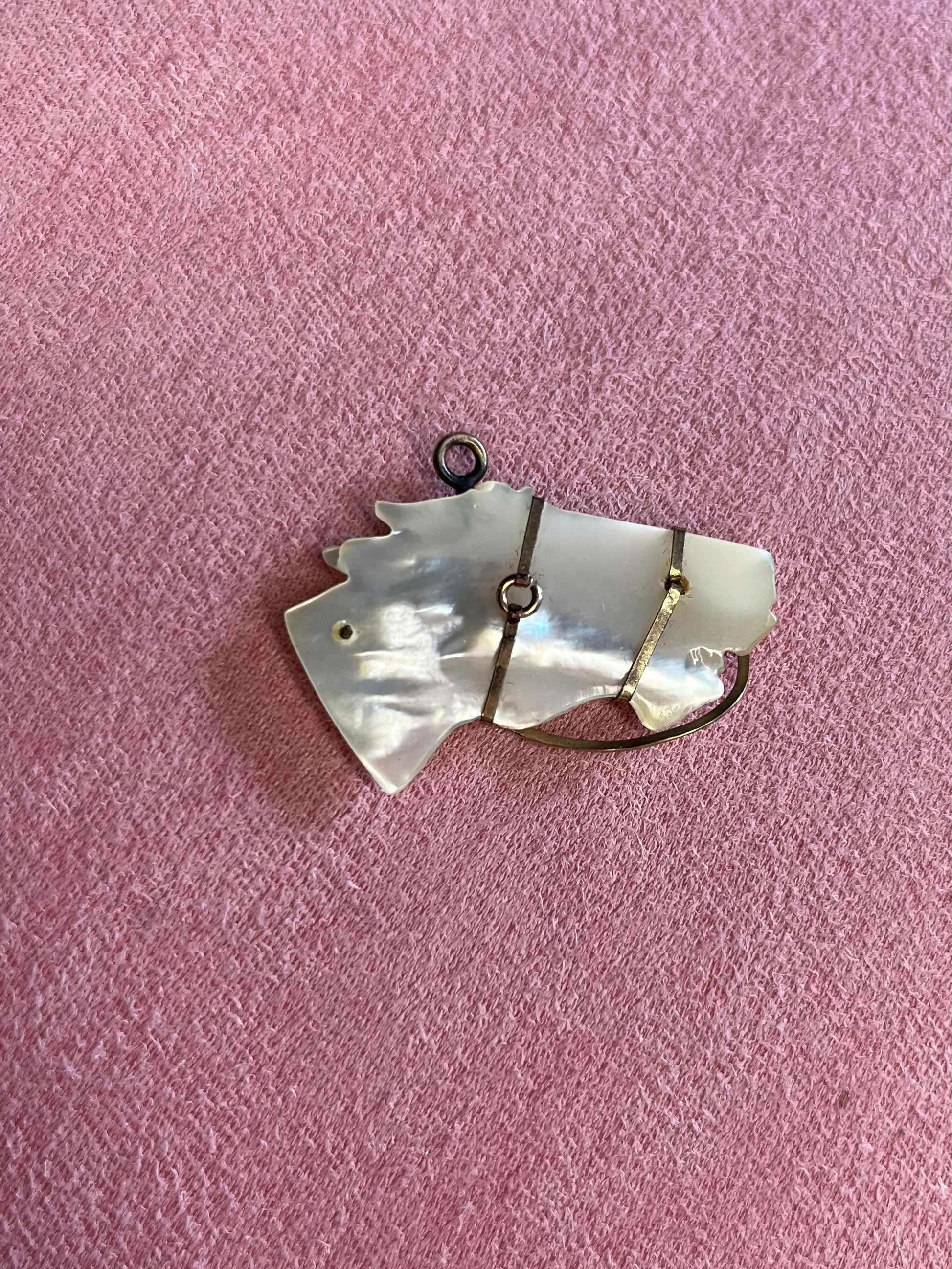 Victorian 1890's Hand Carved Mother of Pearl with Gold Filled Wiring Equestrian Horse Pendant