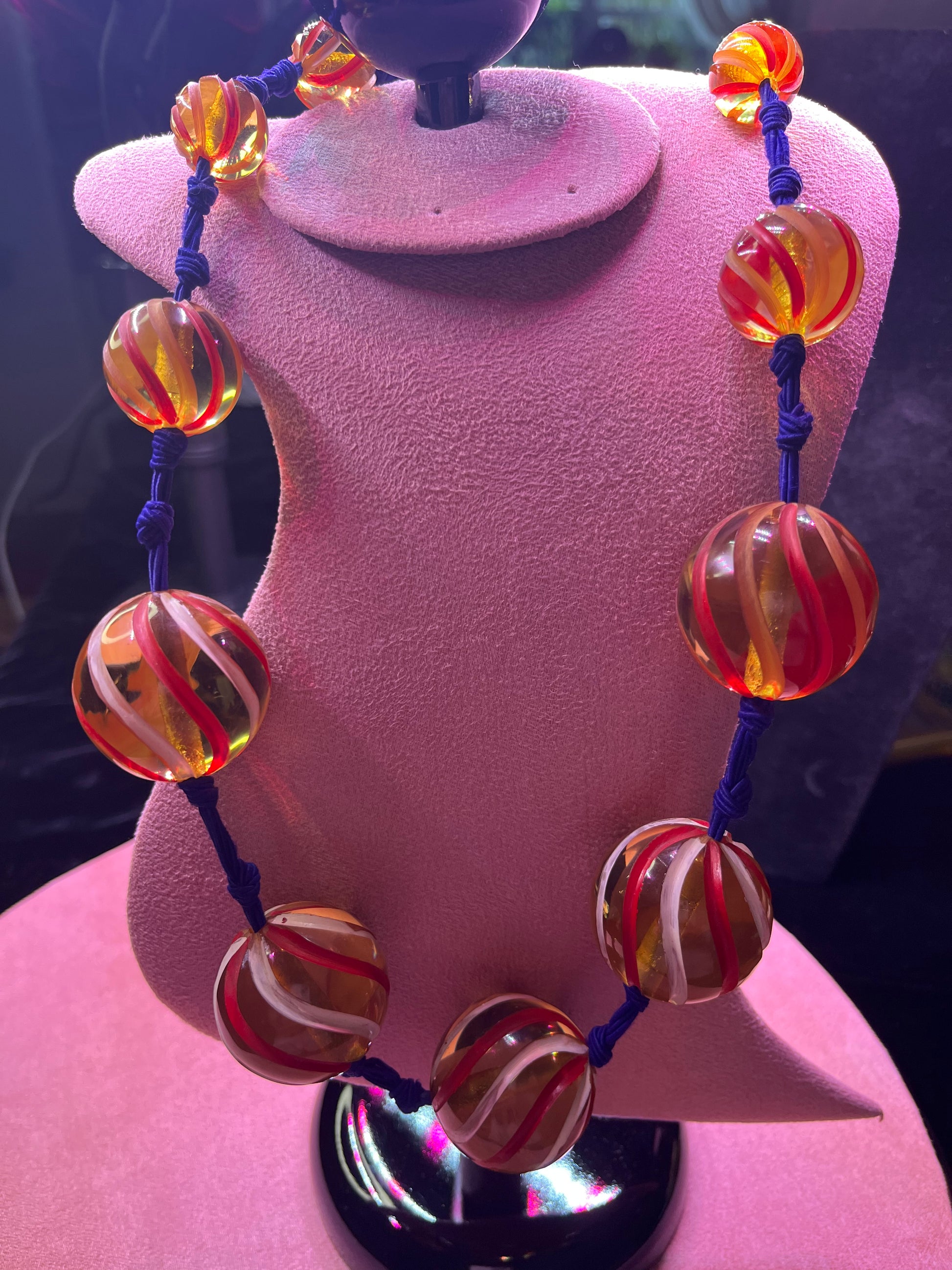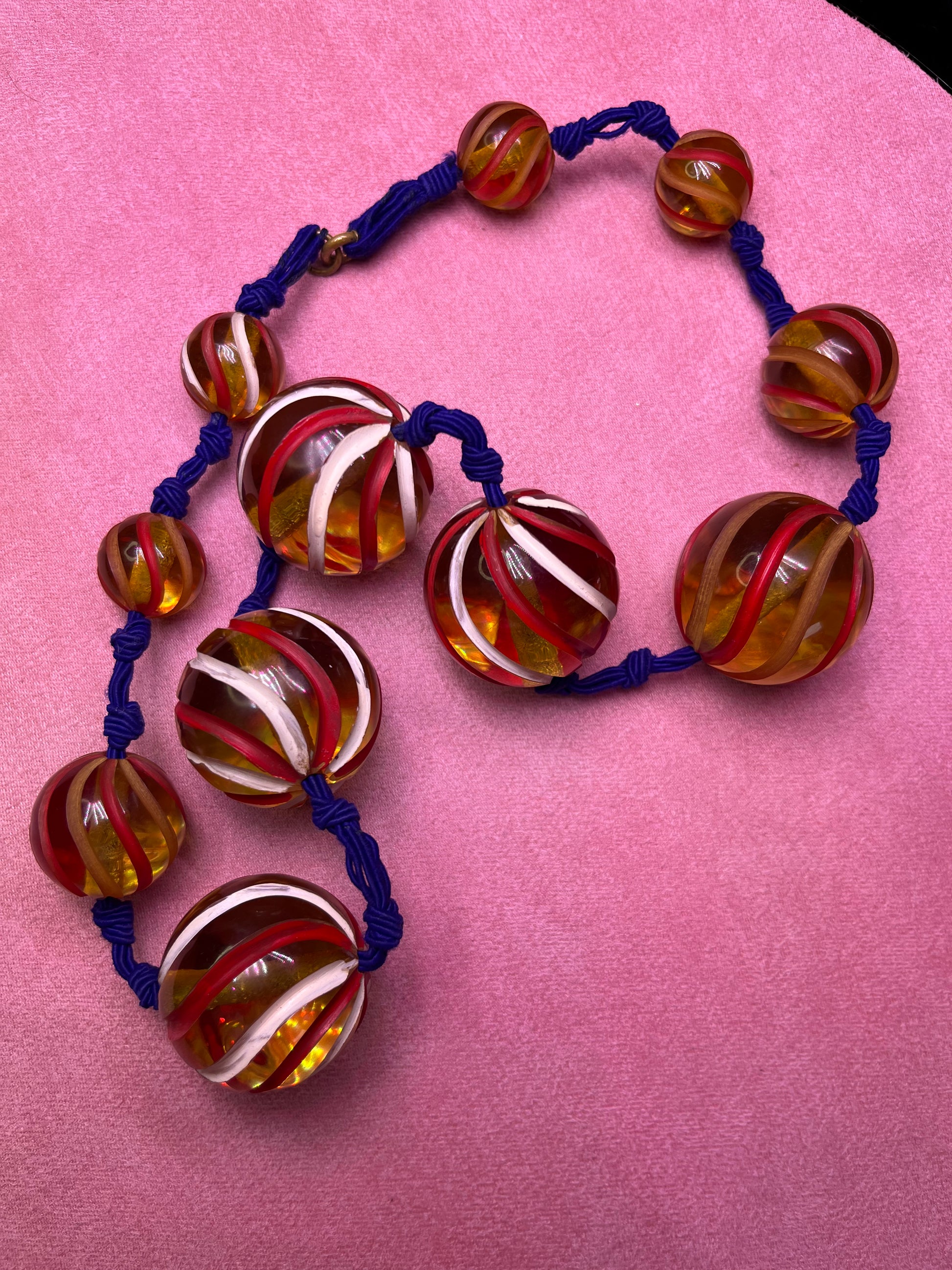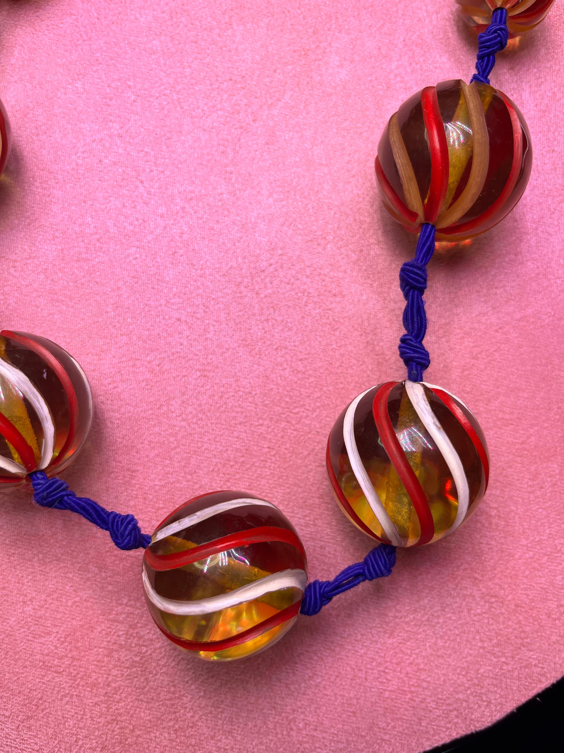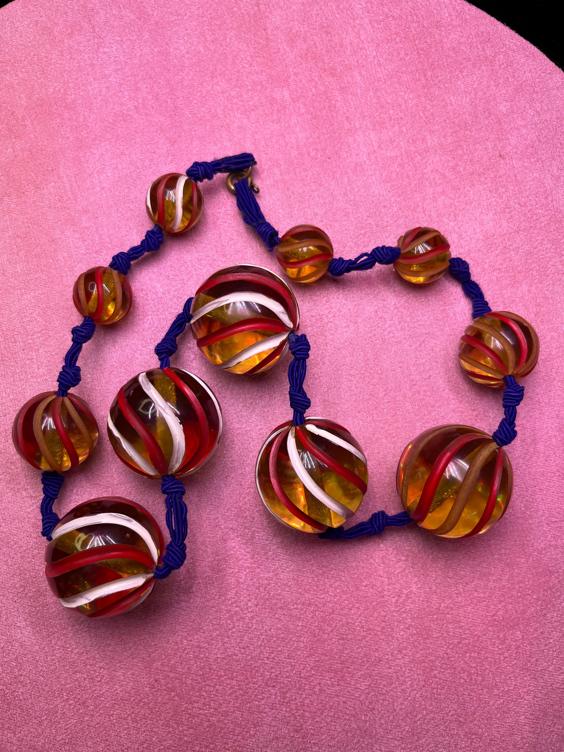 Vintage 1940's Rare Multi-Colored Apple Juice Bakelite Large Beaded Necklace. This statement piece features chunky multi-colored beads, making it a true collector’s gem. Perfectly on-trend and full of mid-century charm, this necklace brings bold, vintage glamour to any look.